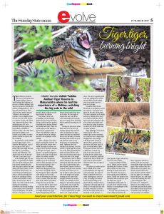 4. Article “Where the Royals Rule” -discusses the influence of Tiger Habitats on Tiger behaviour with focus on Ranthambore, Central India, Corbett and Sunderbans.Got published in The Sunday Statesman (27th May,2018)